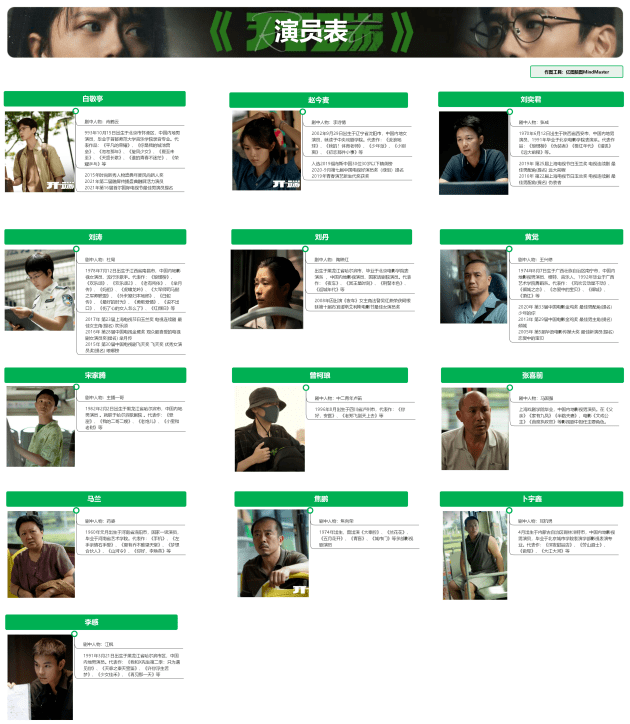 一个好的电视剧,艺人们的实力派演绎也必不可少。那么,贡献了这些迸裂演技的艺人们,都是谁呢?下面这张艺人表,或许能给你一个根本的知道。